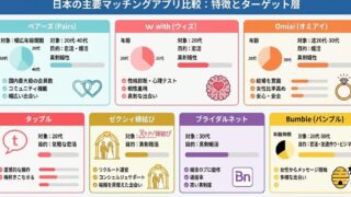 恋愛 【2026年最新版】本当に出会える!目的別おすすめマッチングアプリ7選 2026年最新版。恋活・婚活を成功させるためのマッチングアプリを機能・料金・特徴で徹底比較。初心者向けの選び方ガイド付き。 2025.12.30 恋愛